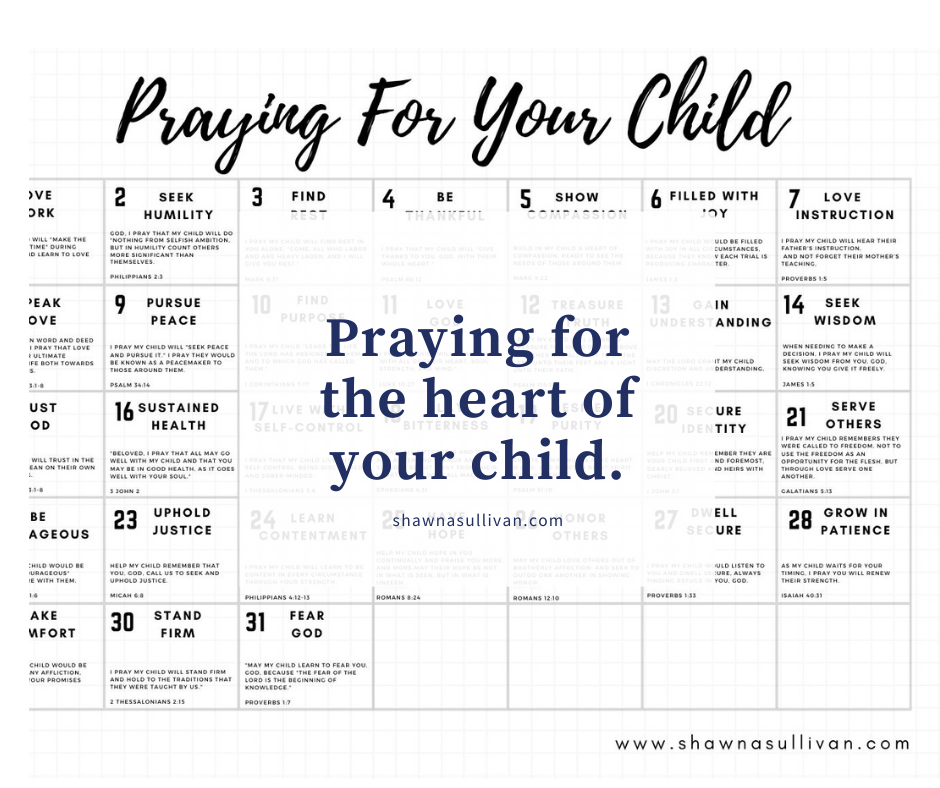 Use THIS FREE template download to help you daily pray specific character traits for each child and to get an idea of verses to use.