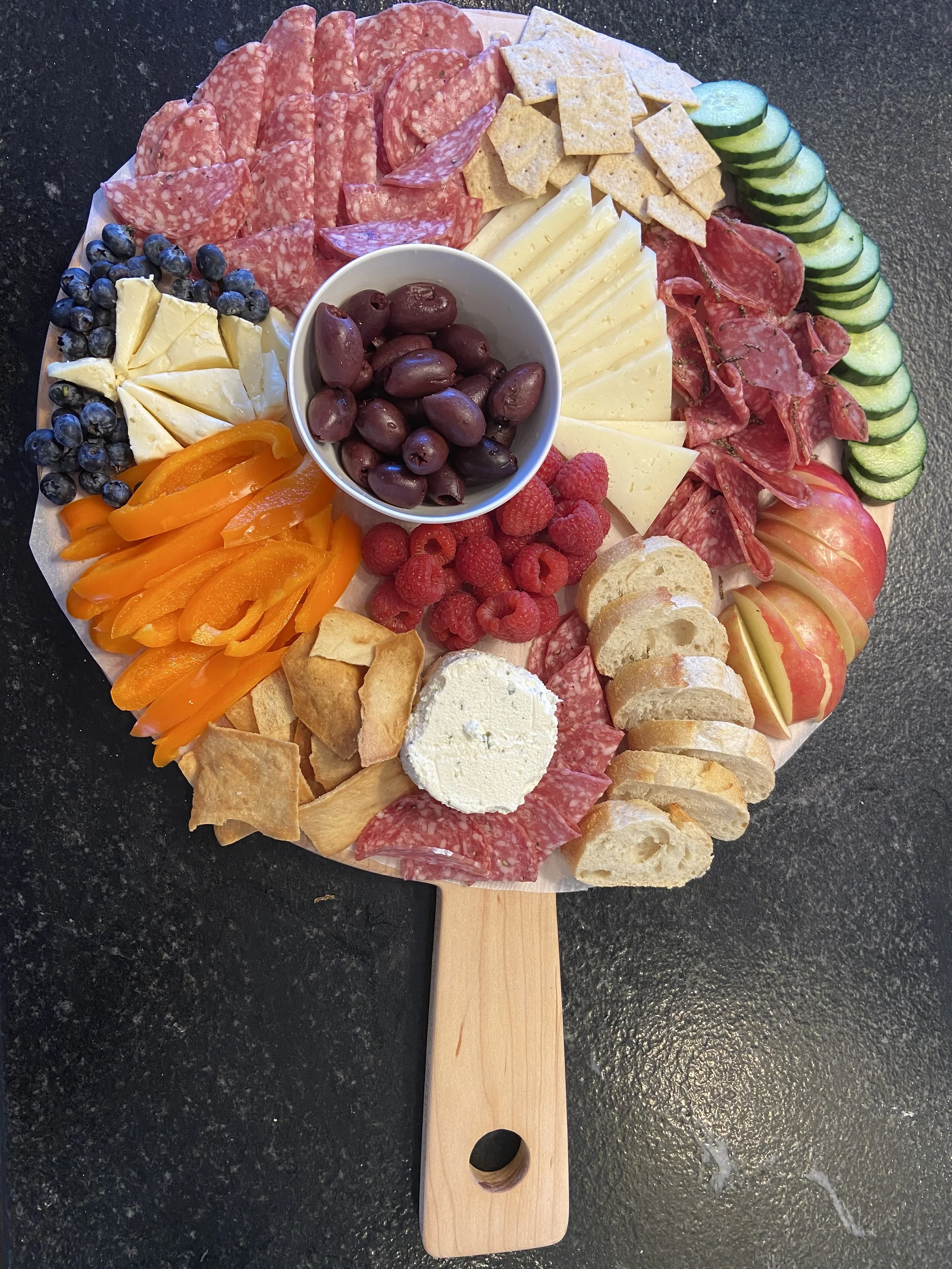 Snack lunch - a charcuterie board of sorts that consists of all finger foods for a fun lunch. This is great for a picnic. Consider carrots, cucumbers, hummus, fruit, dips, crackers, etc. It’s one of my kids favorites and it takes no time.